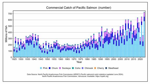 アメリカとロシアはサケ類の漁獲量が増加傾向