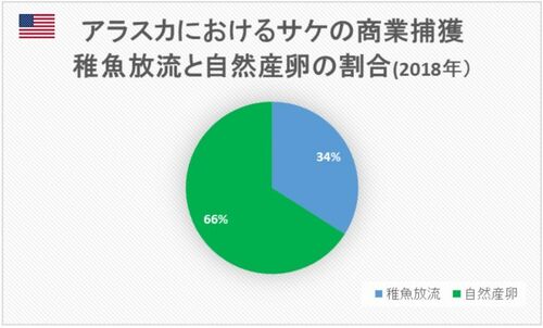 その原因を調べていくと、大きな違いが出てきます。それは、採卵よりも自然産卵を重視する資源管理制度の違いです。アラスカの場合は上のグラフのように7割弱が自然産卵で、自然産卵を重視しています。この方式はエスケープマネジメントと呼ばれています。サケが遡上する適切な通路を確保し、資源の持続性に必要な親魚を十分に遡上させてから、採卵を行うという考え方です。