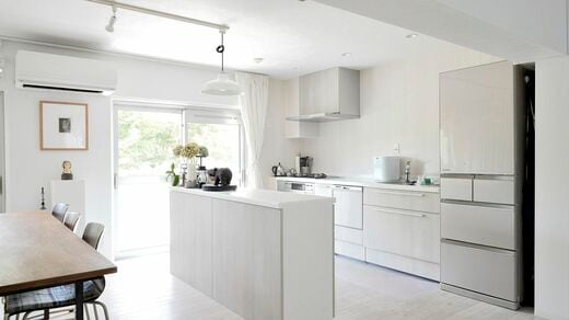 この家はリビングに広さがあるのが私向き。食事にゲストを数人呼んでも余裕があります。ひとりのときはこの場所で布を裁断したり、ミシンを使ったりも。広い部屋がひとつあることで、暮らしに幅を持たせることができます」