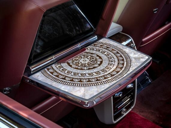 インテリアも各所にパールローズを使い、さらに後席乗員用のテーブルには、家族から提供を受けたマザー・オブ・パールを1351個ずつ、左右にはめこんだという。これだけの数は、ロールス・ロイスにとっても初だったそうだ。