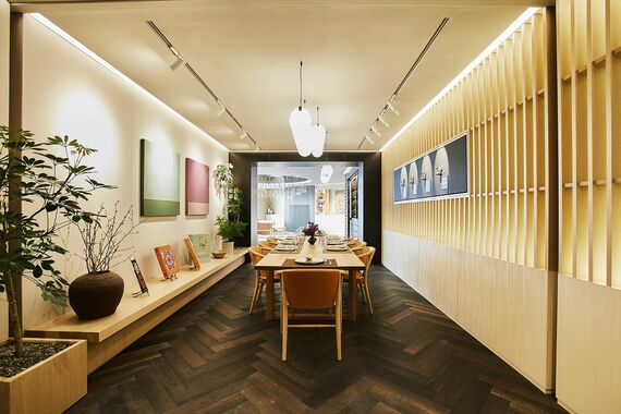 ソウルにも、本社から派遣されたデザイナーが常駐し、クライアントの相談に乗る体制をとっている。室内は韓国伝統の韓紙(はんじ)や白木を使った内装で、落ち着いた雰囲気だ。