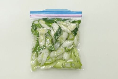 斜め厚切りにして冷凍用保存袋に入れ、空気を抜いて冷凍します。使うときは、凍ったまま炒めものやスープに入れます。冷凍によって日持ちするだけではなく、繊維が崩れてとろりと柔らかくなるのも長ねぎ冷凍のメリットです。