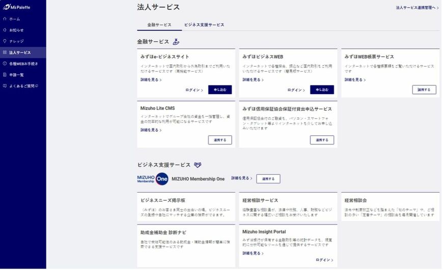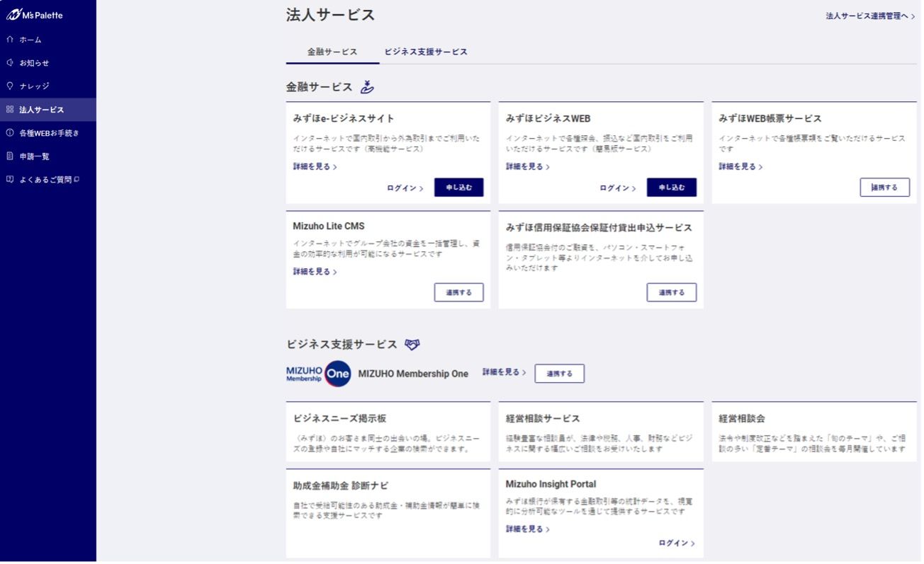 みずほ銀行・元島 M’s Paletteは、端的に言うとオンライン上のみずほ銀行窓口です。法人のお客さまが場所を選ばずに各種申し込み・レポート閲覧などをご利用いただけるようになりました。