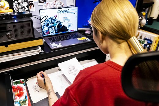 「今もアートの現場で性別に基づく偏見を感じることは少なからずあります。でも、そんなときに私のアートを見て、ジェンダーとの良い意味でのギャップを感じてくれる方がいると心強いし、励みになりますね」