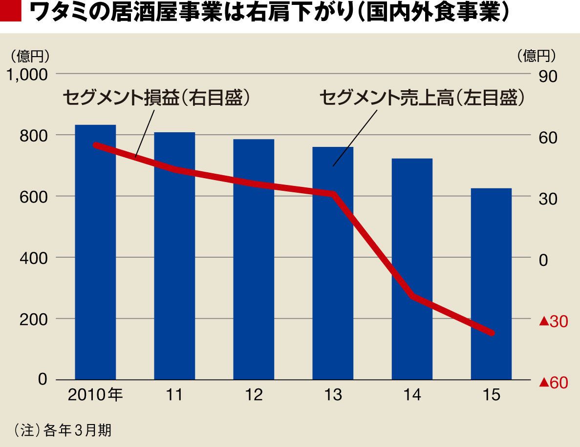 ワタミの居酒屋事業は右肩下がり