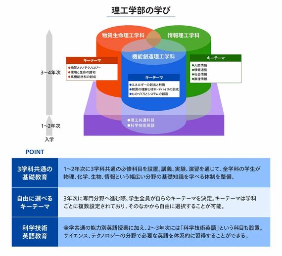 GXをはじめとした、社会課題を解決に導く取り組みを牽引する存在が求められている中、新学科を含め理工学部全体として目指すのは、専門性を核とした幅広い知見を持ち、社会変革を成し遂げられる人材の育成だ。曄道学長は、学部の特徴についてこう話す。