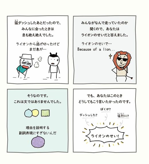 キャリア・教育 #みるみる英語に強くなる 前の記事 次の記事 英語が苦手な人でもわかる「副詞」の正しい使い方 「どこに置いたらよいのか悩んでしまう」人へ 2分で読める 公開日時:2025/02/13 12:00 Mr.Sun 語学講師 作家 フォロー 1/5 PAGES 2/5 PAGES 3/5 PAGES 「ライオンのせい!」と言いたい 次ページが続きます 4/5 PAGES 5/5 PAGES