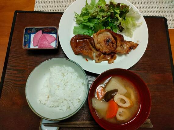 幡本さんは娘夫婦と同じメニューで、違うのは量だけ。70代の娘夫婦の2/3くらいの量で、大好きな生姜焼きも1人3枚のところ、幡本さんは2枚。しかしもちろん完食である。