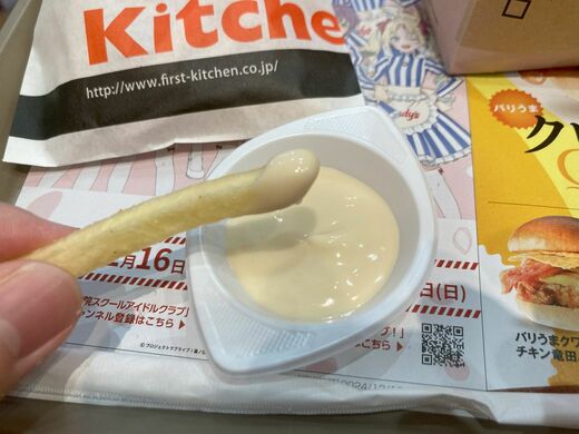 注文したフレーバーポテトは、焦がしバター醤油味。ディップポテトはガーリックマヨを選びました。