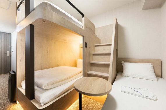 べッドサイズも若干大きめで、「沼津」ではシングルルームで1520×1950mmのベッドを、「大阪心斎橋」では1600×2030mmのベッドを採用。「静岡駅北」では1400✕1960mm、「静岡駅南」と「京都烏丸御池」では1400×2030mmのベッドを設置している。