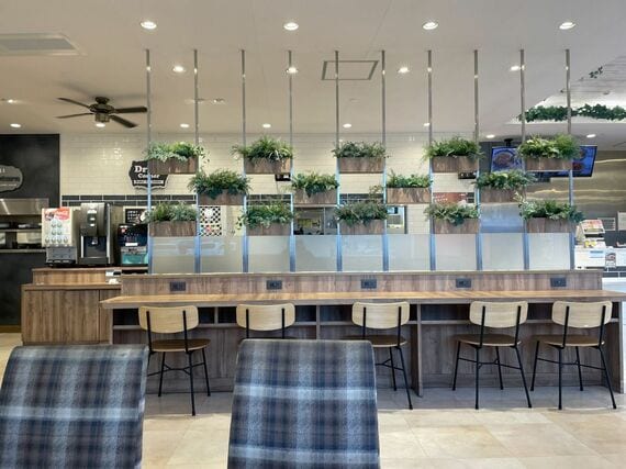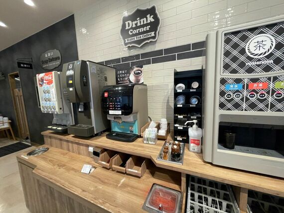 店内にはドリンクバーなども設置され、テーブル席も多い。特にコロナ禍明けで店内飲食の需要が戻ってきたことを受け、このC&C業態には力を入れる予定だった。