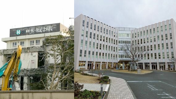 (写真左)買収され一部解体される林ヶ原記念病院(写真右)桜十字病院として新たに開業(写真:桜十字グループ)