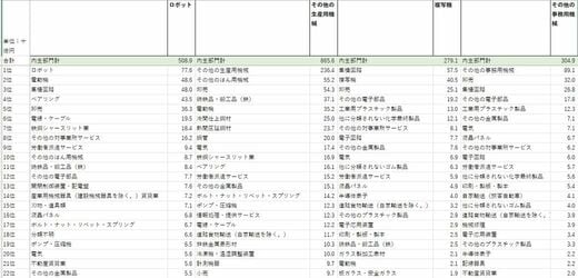 今回、産業連関表(令和2年)の「取引基本表(生産者価格評価表)(基本分類表)」を使っているが、その際の「投入」391部門、「産出」445部門それぞれの金額が多い産業部門をランキング形式でまとめ、エクセルファイルのデータにした。