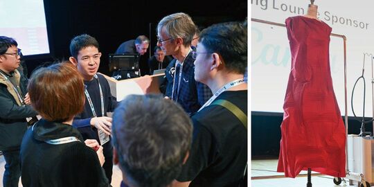 キーノートセッションの注目度も高く、会議2日目の12月4日には「イッセイミヤケ」のデザイナーとして知られる宮前義之氏が講演。現在同氏は「エイポック エイブル イッセイミヤケ」ブランドで専門家チームを率いて研究開発に取り組んでおり、発表の最後には、高温の蒸気を当てて布を縮めることで独自のストレッチ素材を生み出す「スチームストレッチ」のデモを実施。満員の会場からは大きな歓声と拍手が送られた。