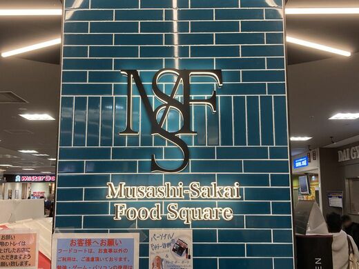 今回のフードコートがあるのは、1979年の開業当時から存在している西館の地下。エスカレーターを降りると左手におしゃれなロゴマークがあり、座席スペースが広がる。