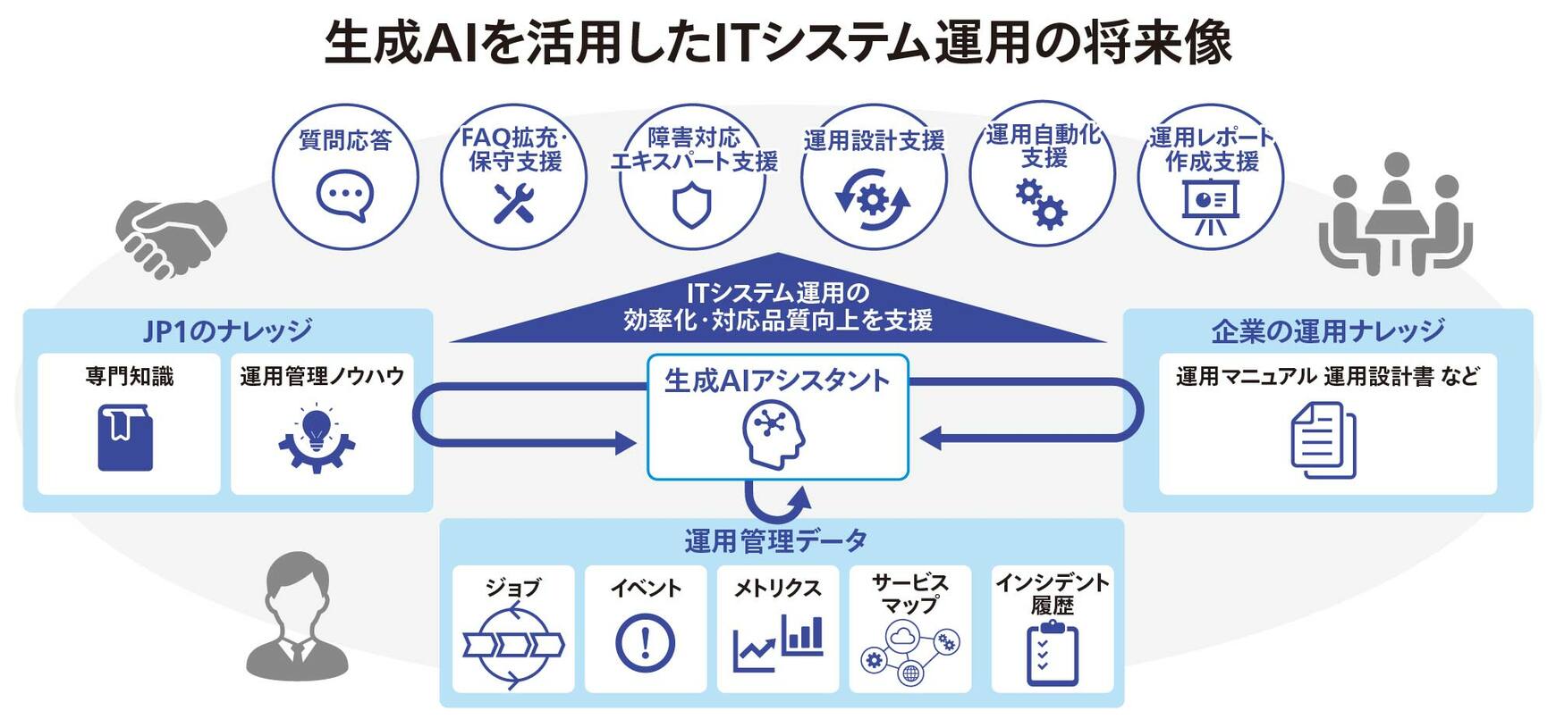 「生成AIなどのテクノロジーの進展が、この問題の解決策として利用できる段階に入ったと認識しています。つまり、従来は人がおこなっていた運用管理業務を生成AIの活用によって自動化、効率化するソリューションの登場です」