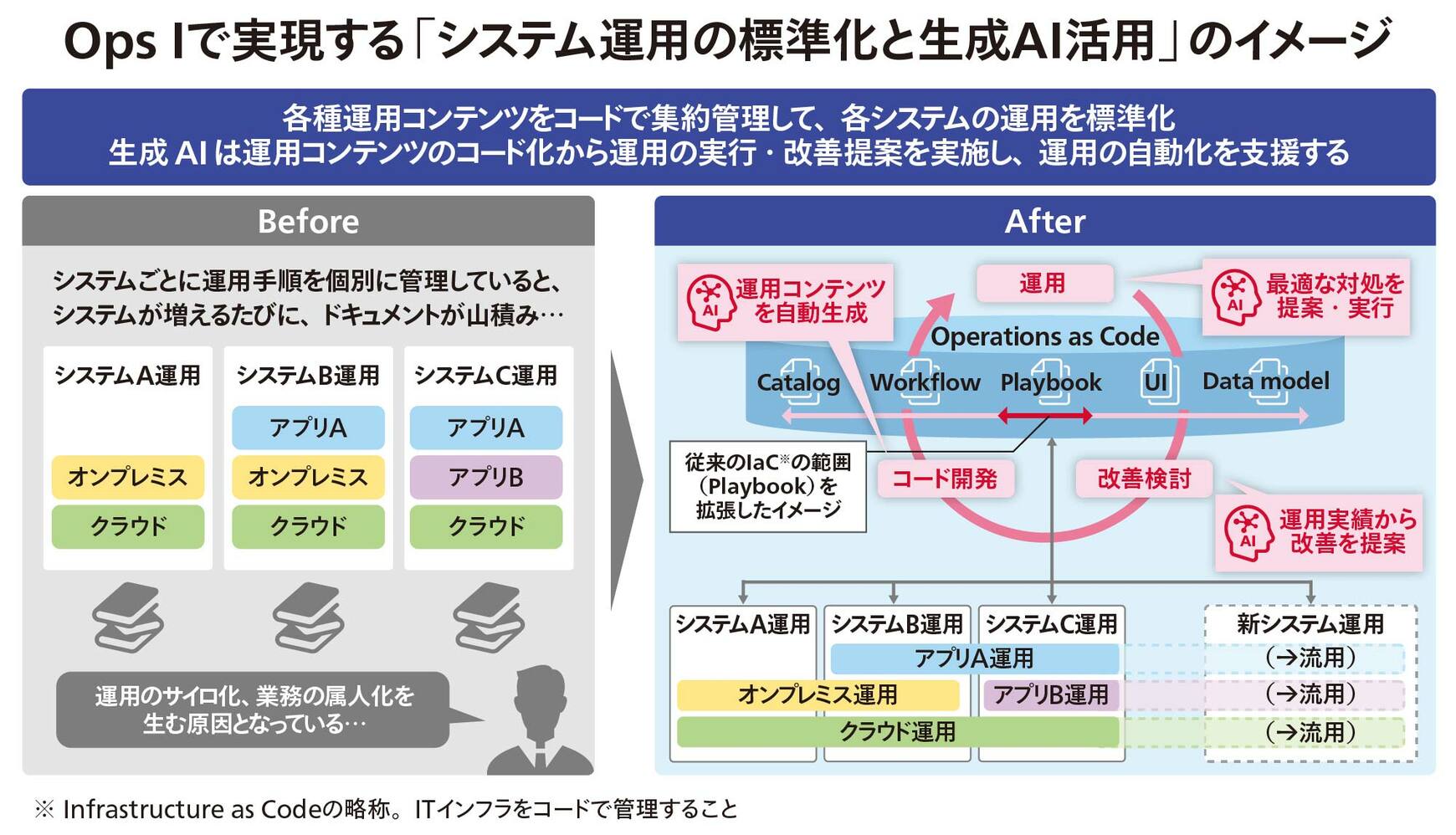 今からコード化・標準化した運用を始めて実績を積み重ねていけば、生成AIに学習させるデータとして強力な価値となります。それが今後のシステム運用の変革を加速する際に、大きな助けになると思います」