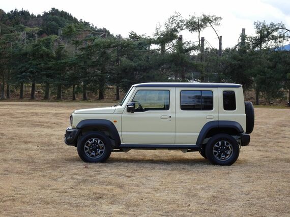 ポイントを絞って説明すると、搭載エンジンの拡大(ジムニー/直列3気筒ターボ658cc→ジムニー シエラ直列4気筒1460cc)、ボディ全長の大型化(3395mm→3550mm)、ワイドフェンダーの装着によるボディ全幅の大型化(1475mm→1645mm)、ワイドトレッド化(前1265mm/後1275mm→前1395mm/後1405mm)、車両重量の増加(5MTモデルで40kg/4ATモデルで50kgジムニー シエラが重い)となる。
