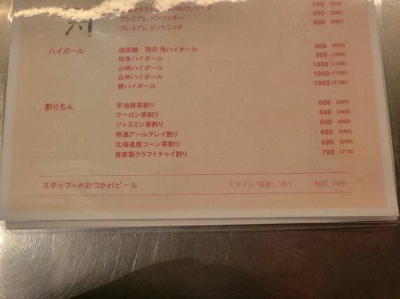 そんな中で利益率の高いドリンクの出数が増える「一杯どうぞ」は単純に経営面から見て有りがたい。なるべく多くの売り上げを取りたいと考えたら、メニュー表に「スタッフに一杯」の項目を入れたくなる気持ちもわからなくない。