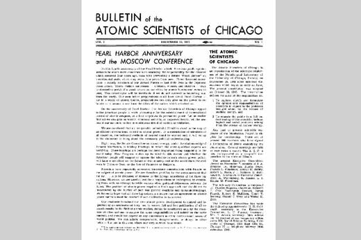 シラードを含むマンハッタン計画の科学者の一部は、「一般大衆、政策立案者、科学者たちに人類の存在に対する人為的脅威を減らすために必要な情報を提供する」ことを使命とする、シカゴ原子力科学者会報を1945年後半に立ち上げた。そしてその創刊号は、広島と長崎への原爆投下から4カ月後に発行された。