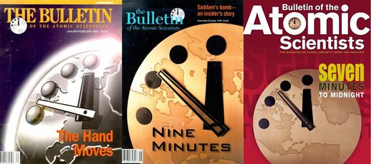 だが、ソ連の崩壊は、それまで二大大国の一方が保有していた核兵器に関する機密情報が流出し、かえって核兵器が世界に拡散してしまうのではないかという新たな懸念を浮上させ、再び終末時計の針を前進させた。この懸念は1998年に対立するインドとパキスタンがともに核実験を実施したことによって現実のものとなった。
