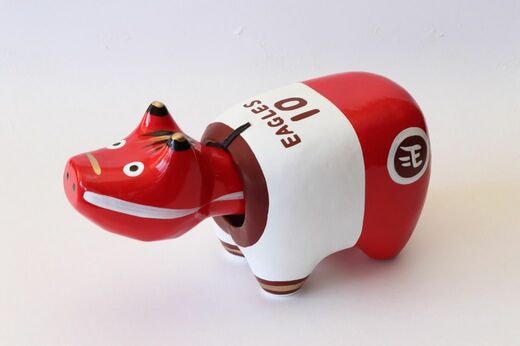 赤べこ業界で後発組だった野沢民芸が手がける張り子は、時代を経ても古びないフォルムの美しさと、職人技に裏打ちされたテクスチャーの美しさを最大の特徴とする。