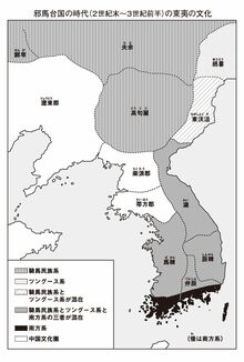 しかし、日本と朝鮮半島南部の国々の文化は、邪馬台国(やまたいこく)の時代にあたる三世紀の中国東方の国々について記した『三国志(さんごくし)』の時点で、かなり異なっていた。