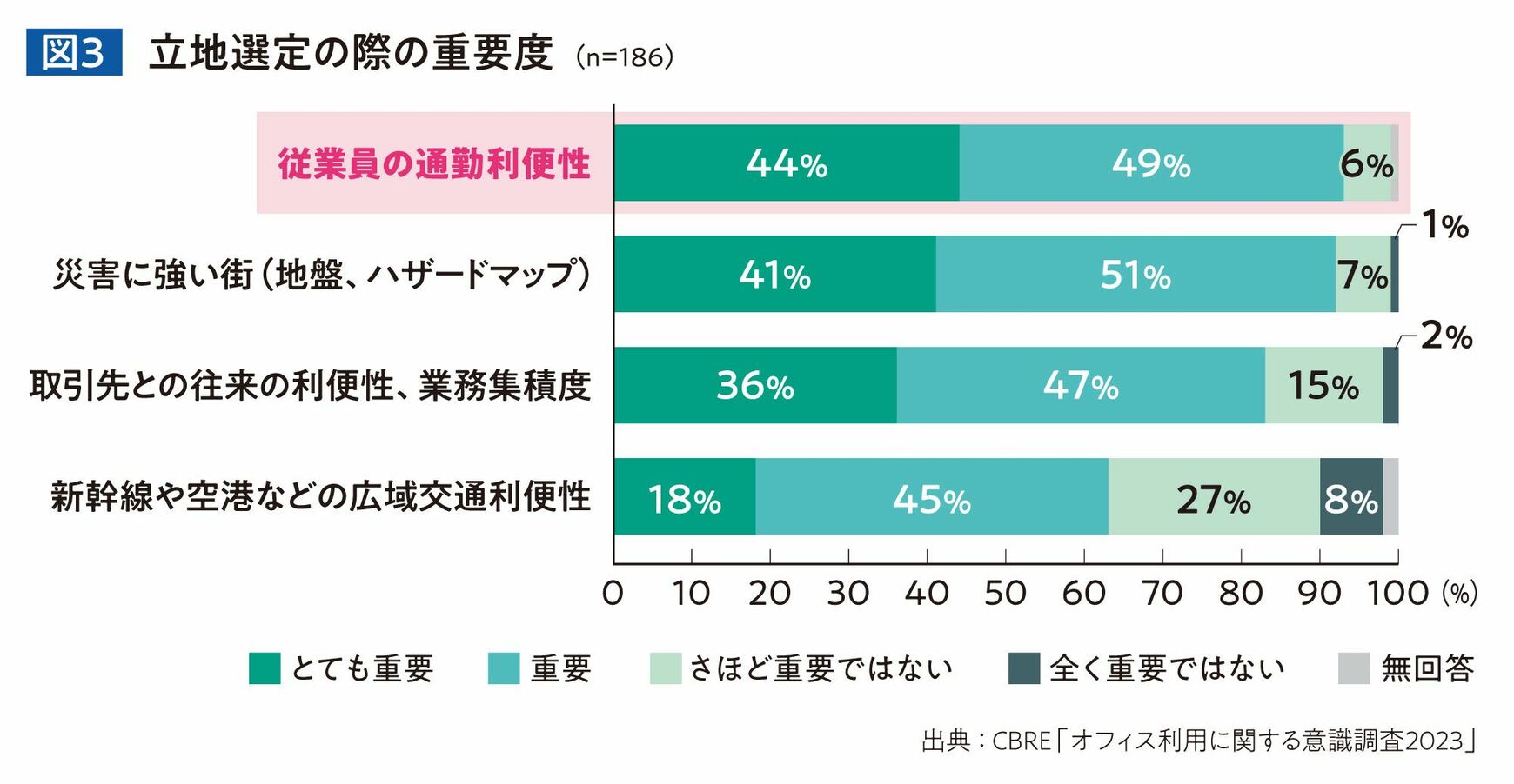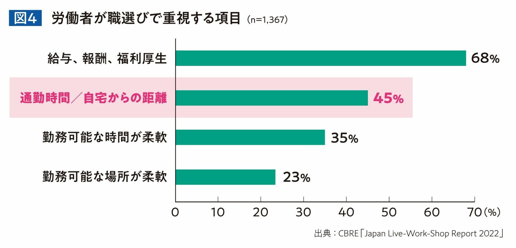 また、一般消費者を対象とした別の調査では従業員側も職を選ぶ決め手としてオフィスの通いやすさを重視している。(図4)