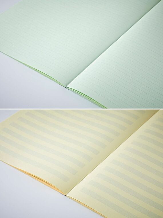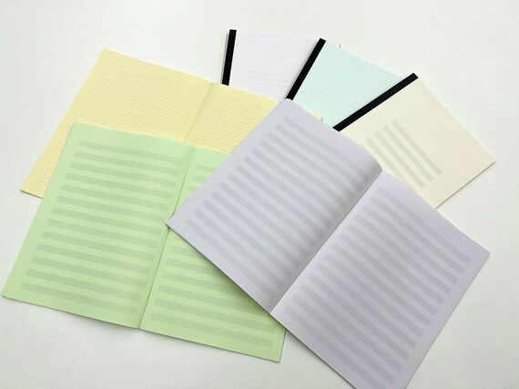ニーズが強かったこの3つの要素が、まさに「まほらノート」の特徴となっている。①の紙の色は、目に優しいレモン、ラベンダー、ミントの3種類に決定。②のデザインについては、表紙のイラストや日付欄をなくしてシンプルにした。③の「書いているところを見失わない工夫」は社内でアイデアを出し合い、太い線と細い線を交互に引く「太・細交互横罫」と、1行ごとにあみかけを薄く施した「あみかけ横罫」を採用した。