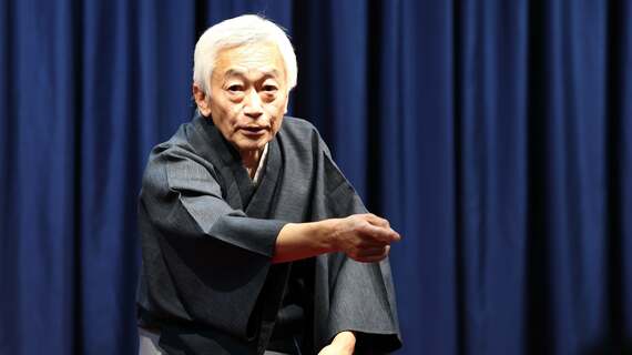 「待ってましたっ!」。着物姿の参遊亭遊助さん(本名・豆生田信一さん)が登場すると、かけ声が飛ぶ。巧みな話術で、古典落語「宮戸川」を披露すると会場は笑いに包まれた。1月下旬、東京・亀戸梅屋敷での1コマだ。