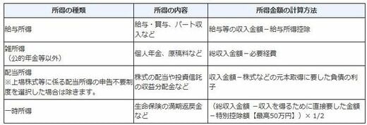 【確定申告が必要な所得の種類】