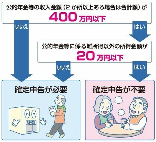 ただし、すべての年金受給者が確定申告の対象になるわけではありません。「確定申告不要制度」により、以下の2つの条件に該当する人は申告が不要です。