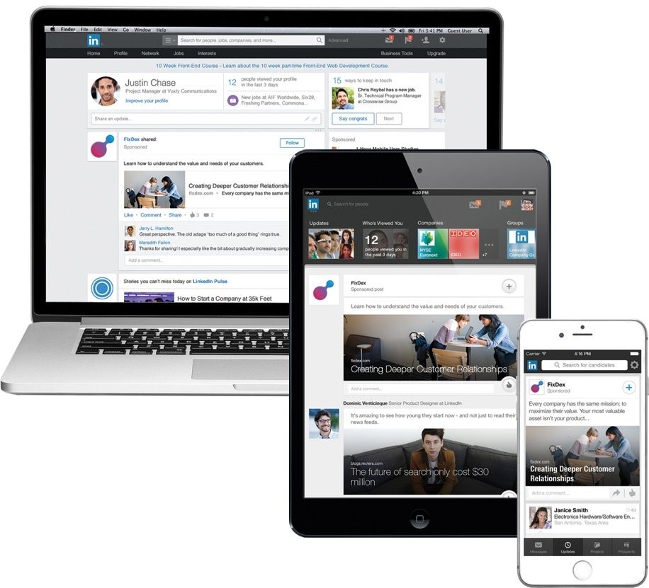 2013年、LinkedInは「スポンサード・アップデート(Sponsored Updates)」と呼ばれる「インフィード広告」を売り出した。この商品は、マイクロソフトやホテルチェーン「ホリデイ・イン・エクスプレス」などによる利用実績がある。