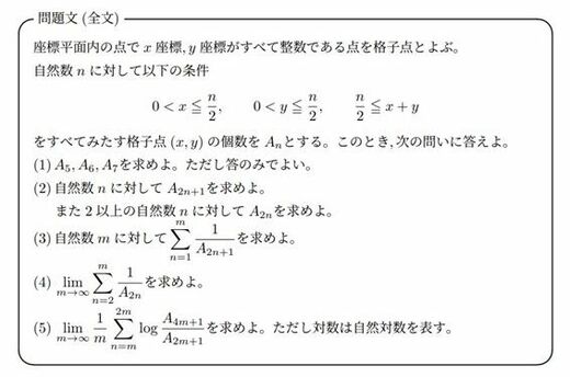 この問題は、一言で言えば「条件を満たす点の数を数える」問題です。問題の前半で点の数の数え上げ、後半では、前半で求めた値を用いて計算を行う、という問題構成になっています。
