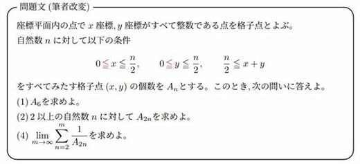 つまり、端っこ2つの点を数えるか、数えないかという違いということです。 原文(出題ミス)のときには端の点を数えず、改変案のときには端の点を数えています。