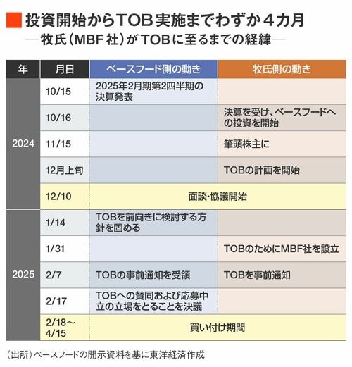 2月17日、牧氏の資産運用会社であるMBFアクセラレーションは、ベースフードに株式公開買い付け(TOB)を行うと発表した。