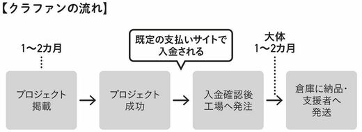 クラファンでは「プロジェクトが成功し、商品代を集められたら商品を工場に本発注する」というフローをふめます。そのため、在庫リスクを抱える心配がありません。
