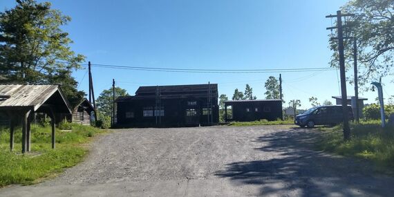 廃止前の恵比島駅は、向かって右に見える小さい建物が本来の恵比島駅で、左は『すずらん』撮影の時に作られたロケセットです。恵比島駅は廃線とともに廃駅となりましたが、そのロケセットで作られた木造の駅舎は、現在もそのまま残されています。