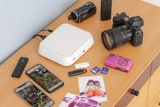 テレビに接続して、SDカードや、HDDなどのストレージ、家族のスマホ……などから、写真を取り込んで保存することができる。