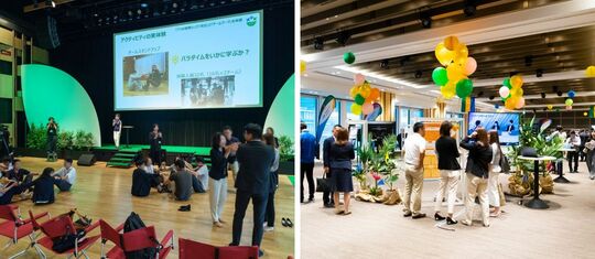 右:にぎやかな会場演出で、参加者の心を動かすことを目指したイベントも