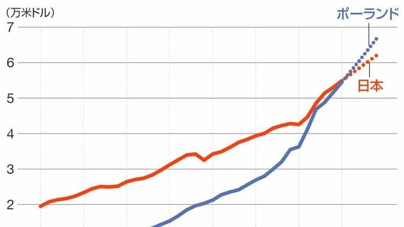 1人当たりGDPでポーランドに抜かれる