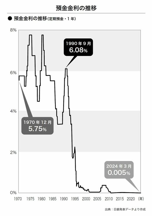 しかも、過去のインフレ時代には預金金利もそれなりに高くなっていましたが、今の日本はようやくゼロ金利政策が解除されたとはいえ、相変わらず極めて低水準にとどまっています。高めの金利を提示している銀行であってもゼロコンマ以下の金利にすぎず、消費者物価の上昇率に打ち勝つことは不可能です。
