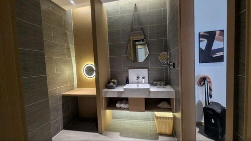 上海と大連では、「低価格ブランド」のATOUR LIGHTに宿泊した。たしかに客室はATOURに比べて簡素だったが、客室のトイレが温水洗浄便座だったり、洗面所に女優ライトが設置されていたり。デリバリーが普及している中国らしく、宅配ロッカーや配送ロボットもある。