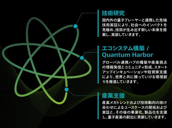 寺部 当社は量子コンピューティングで日本に強い産業をつくり出したいという想いで、技術研究、エコシステム構築、産業支援の3つの柱で取り組んでいます。クライアントからの依頼ありきではなく、自らがR&D( Research and Development、研究開発)をしています。
