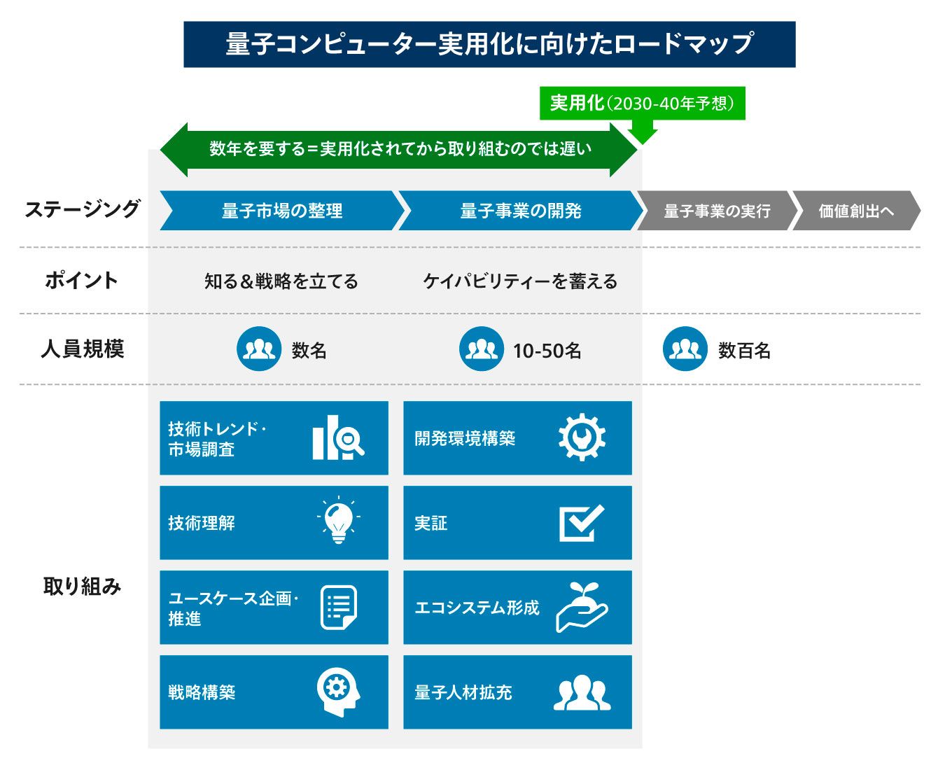 だからといって様子見し、いざ実用レベルのマシンが登場したタイミングで着手しても、出遅れてしまうでしょう。今、世界では熾烈な開発競争が行われており、先見性ある企業が取り組み始めています。生成AIの急速な発展と普及からもわかるように、キャッチアップしている間に、先行企業はどんどん先を進んでしまいます。