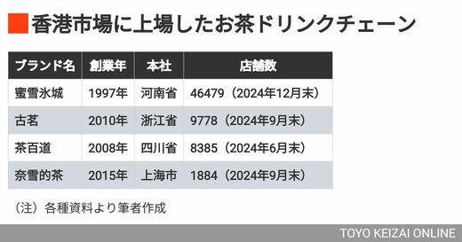昨年以降、お茶ドリンク業界は上場ラッシュに沸いている。2021年に「奈雪的茶」が香港証券取引所に業界で初めて上場して以降間が空いていたが、昨年4月に業界3位で四川省成都に本社を置く「茶百道(ChaPanda)」、今年2月には2位で浙江省杭州市発祥の「古茗」の運営会社がそれぞれ香港証券取引所に上場した。