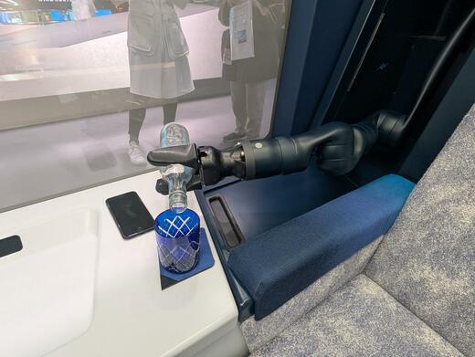 展示模型には、乗客の座席横にロボットアームを配置し、実際にワイングラスへドリンクを注ぐデモまで備わっている。移動時間がただの移動ではなく、有意義な時間に変わることを示す仕掛けだ。まだコンセプト段階とはいえ、川崎重工業が描く近未来の移動体験が凝縮されたモデルと言える。