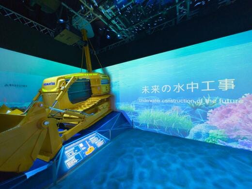 展示スペースには精巧な大型模型が設置されており、サンドアートやCG映像、実写映像を組み合わせたショートムービーで"未来の水中工事"の世界観をわかりやすく伝えている。