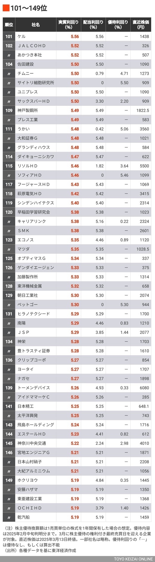 政治・経済・投資 3月に権利が確定する「配当+株主優待の利回りが高い会社」トップ300 利回り5%超は192社、1位は驚愕の90%超! 3分で読める 公開日時:2025/03/17 05:00 東洋経済オンライン編集部 フォロー 1/7 PAGES 2/7 PAGES 3/7 PAGES 4/7 PAGES 優待利回りのみでのランクインもちらほら 次ページが続きます:【まだある!「利回り5%台」】 5/7 PAGES 6/7 PAGES 7/7 PAGES