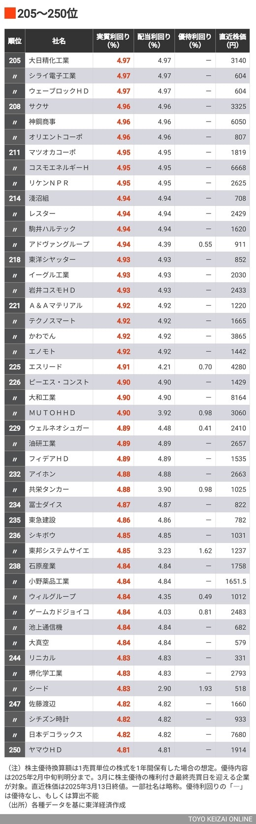 政治・経済・投資 3月に権利が確定する「配当+株主優待の利回りが高い会社」トップ300 利回り5%超は192社、1位は驚愕の90%超! 3分で読める 公開日時:2025/03/17 05:00 東洋経済オンライン編集部 フォロー 1/7 PAGES 2/7 PAGES 3/7 PAGES 4/7 PAGES 5/7 PAGES 6/7 PAGES 優待利回りが実質利回りを押し上げ 次ページが続きます:【300位でも利回りは4.6%台と高水準】 7/7 PAGES
